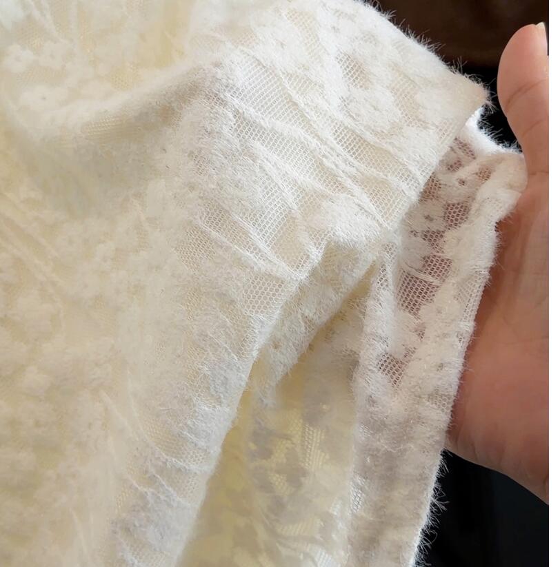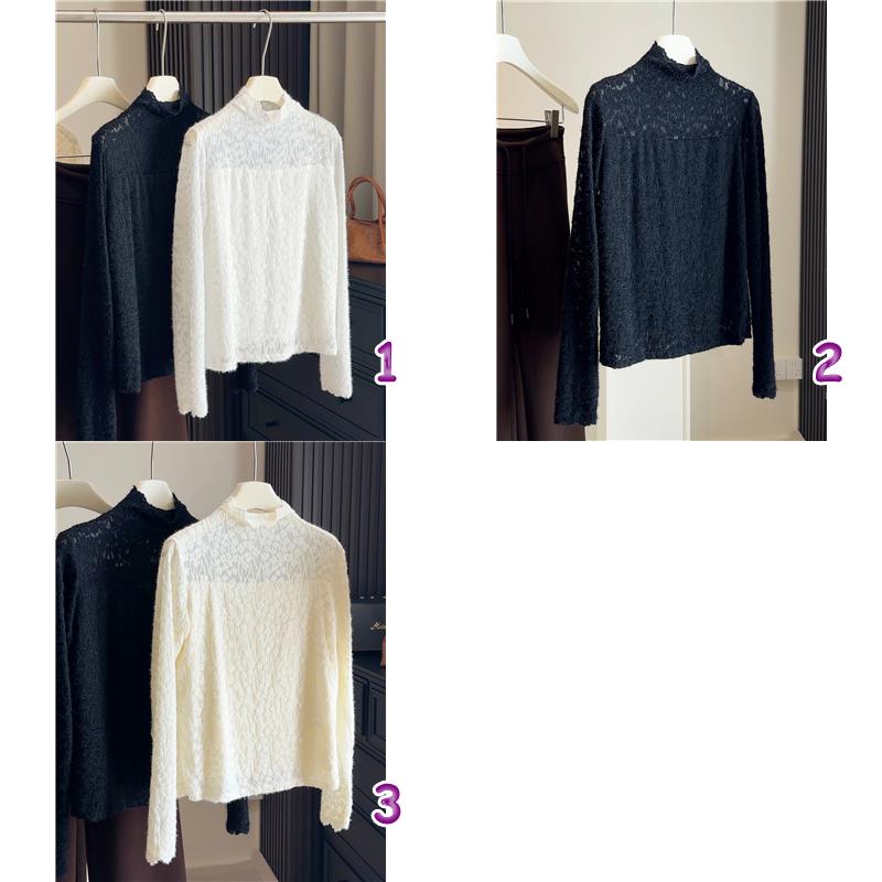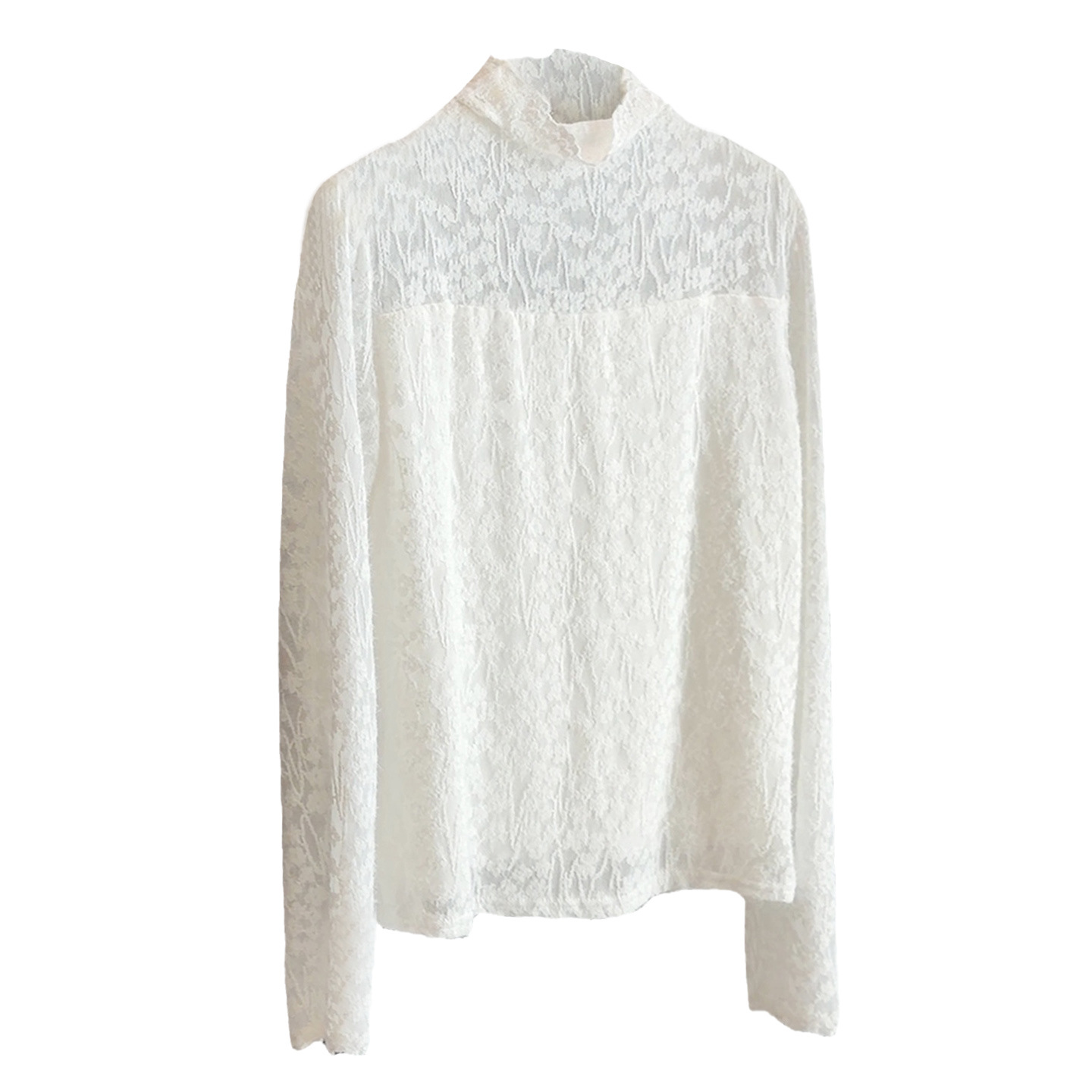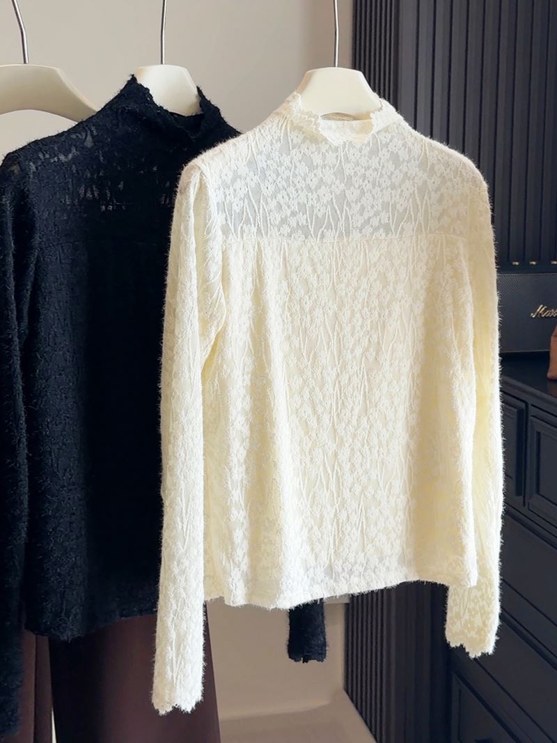上品なレース編みが美しく、ハイネックデザインで首元まで暖かく包み込みます。