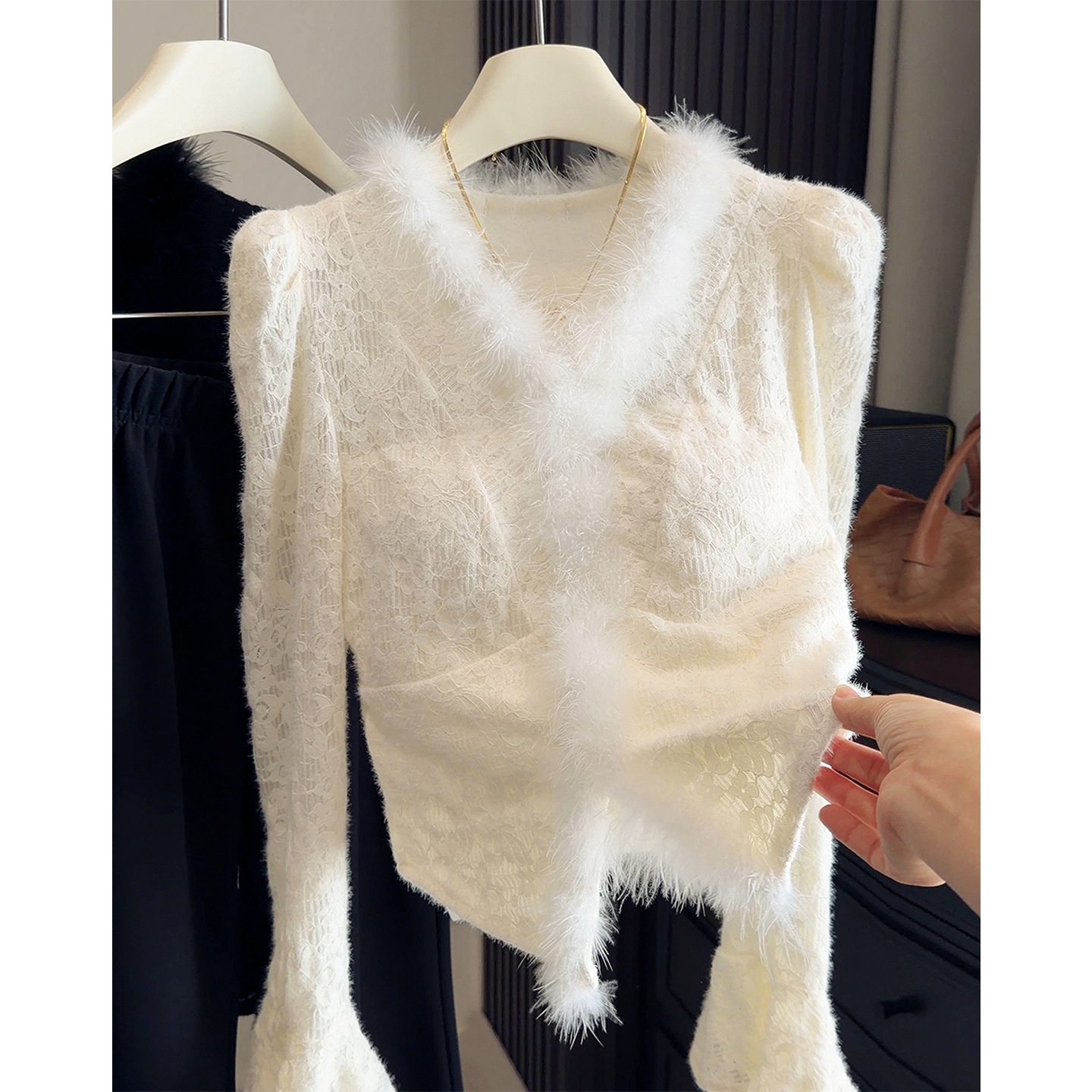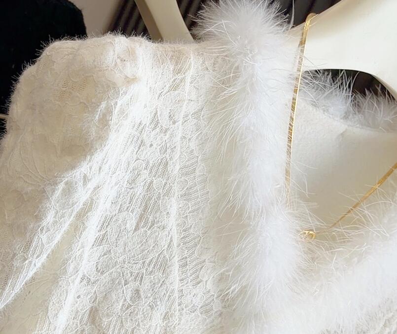 上品なレース編み模様が美しいレディース服です。