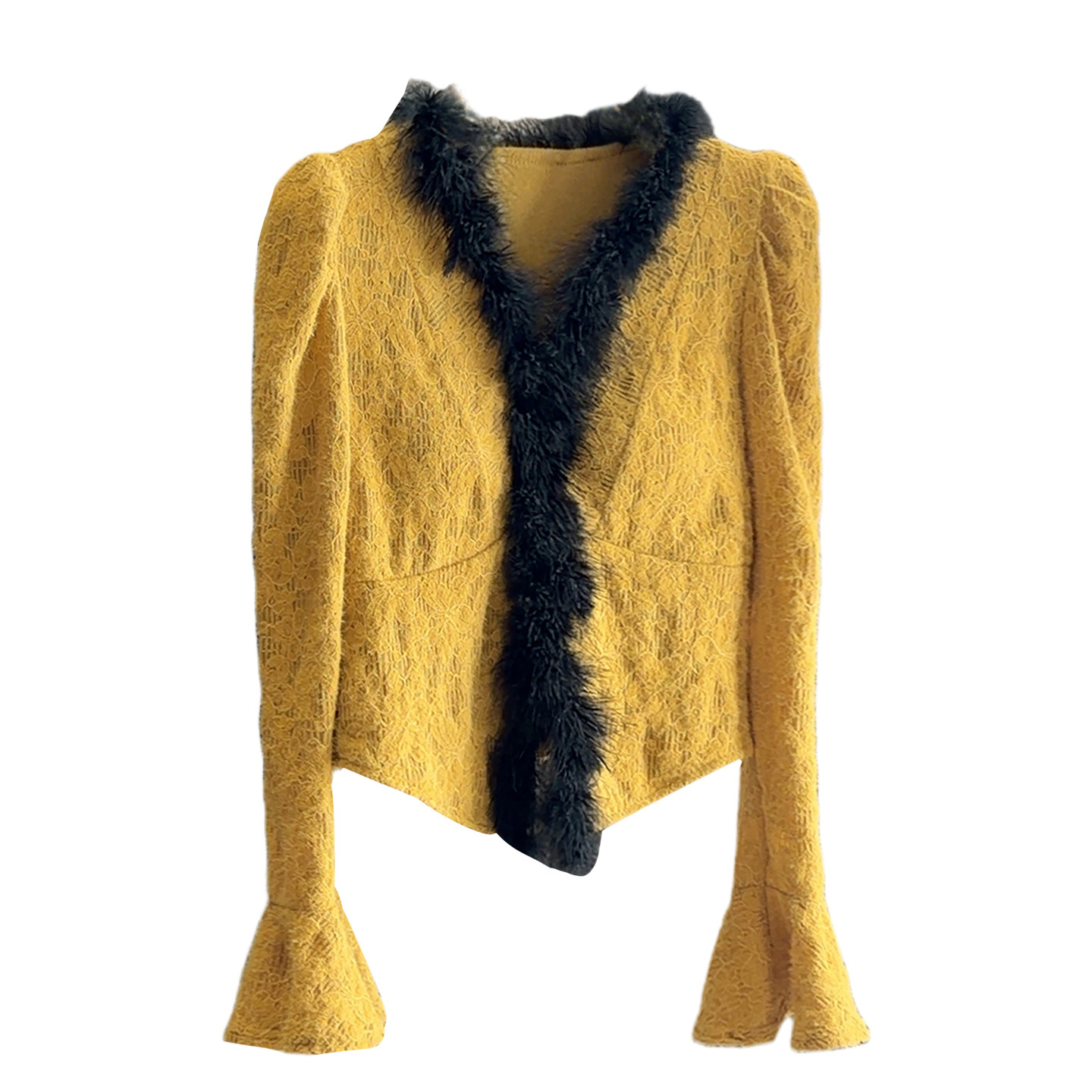 ベルスリーブデザインで女性らしいシルエットを演出します。