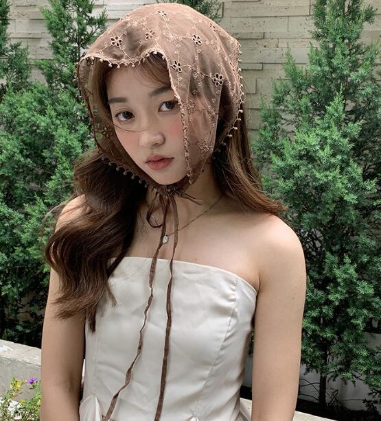繊細なレース素材で作られた上品な三角巾スカーフです。